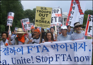 FTA 본격 협상이 임박하면서 반대 목소리가 워싱턴 중심가에 울려퍼졌다.