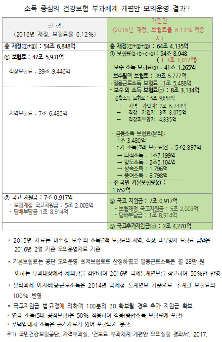 문제는 역시 재원 조달이다. 일단 정부는 부과체계 개편 정책을 발표하고 단계 개편 단축을 골자로 한 수정안을 내놨다.