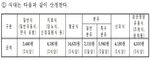 가령 현재는 산모식을 포함한 일반식은 1식당 3390원인데, 개정안은 일반식 3440원, 산모식 4180원으로 각각 인상된다.