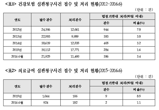 "건강보험분쟁조정위 법정기간 처리율 1.6% 불과"