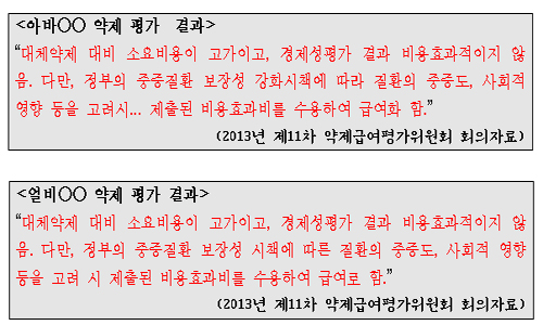 이런 갑작스런 인상에 대해 심사평가원 약제급여평가위원회와 보건복지부 건강보험정책심의위원회에서 전문가들과 시민사회단체의 문제제기가 있었지만, 정부는 여전히 2GDP수준으로 약값을 인정해 주고 있다고 권 의원은 지적했다.