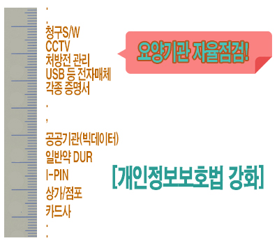 개인정보보호법을 보면, 주민등록번호 취급 기관들이 안전성 확보 조치를 했을 경우 과징금을 면제받을 수 있기 때문에 이 점을 적극 활용하기로 한 거죠. 병의원과 약국들이 자율점검을 통해 미흡한 점을 자체 보완하고 개인정보를 우수하게 관리하면 국민들도 좋고, 요양기관도 강력한 규제로부터 보호받을 수 있는 복안인 셈입니다.