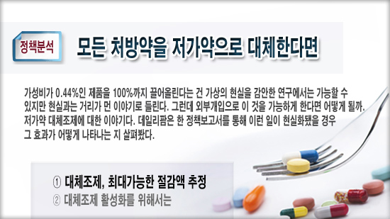 연구진은 "약제 대체조제 활성화에는 다양하고 어려운 장애가 존재한다. 정책효과에 대한 확신부족이 그 하나"라고 했다. 또 "2014년 4월 약가 일괄인하 도입으로 저가약 대체가 사실상 효과를 보기 어렵다는 점도 중요한 회의적 시각"이라고 했다.