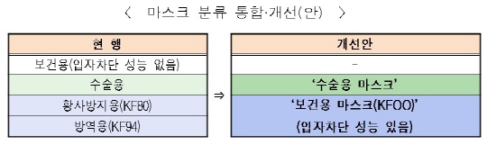 의약외품 마스크 보건·수술용 2분류체계로 통합 조정