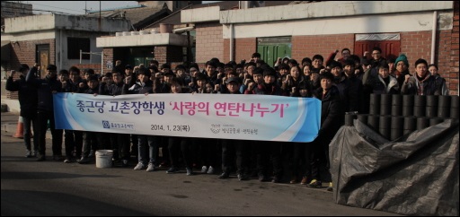 올해 선발된 종근당고촌재단 장학생 90여명은 23일 인천시 부평구 산곡동 일대 저소득가정 20가구를 찾아가 5000여장의 연탄을 나르며 나눔의 온기를 전하는 시간을 가졌다.