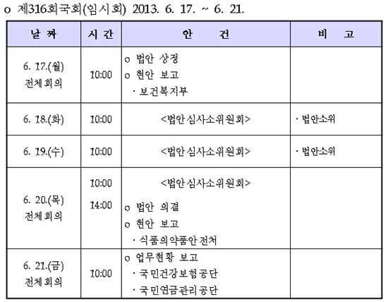 국회 보건복지위원회는 오는 17일부터 닷새동안 의사일정을 진행하기로 잠정 결정했다.