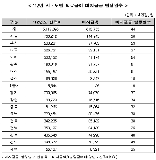 지난해 의료급여 미지급금 발생일수는 평균 44일, 요양기관당 금액은 831만원으로 집계됐다.