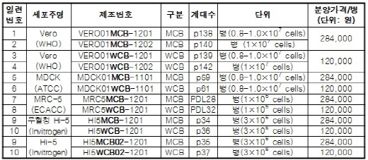 또 세포주 배양이 가능한 마스터 세포주는 현재 백신을 개발 중인 업체나 질병관리본부 등이 분양 받을 수 있다. 분양은 업체당 1회로 제한되며, 식약청에 연 1회 활용현황을 보고해야 한다.