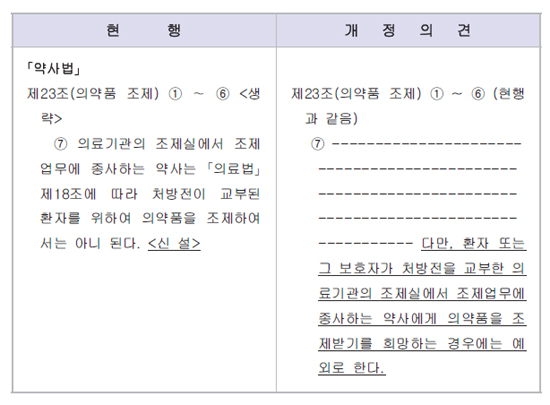 - 국회법제실, 입법의견서에 '조제장소 선택권' 수재