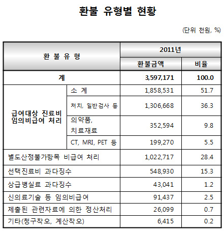 부당징수 진료비 36억 환불…임의비급여 절반 넘어