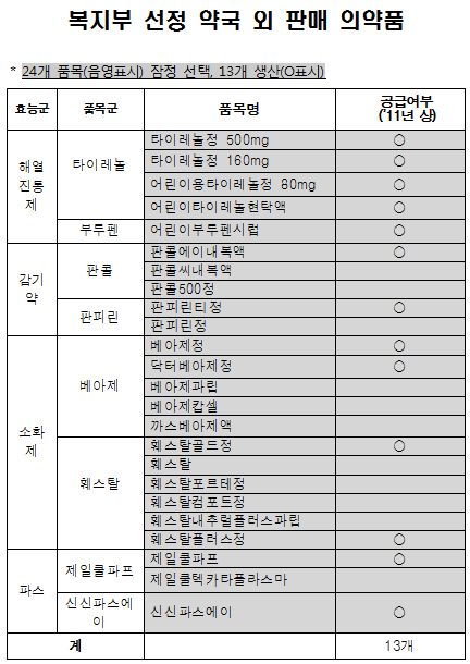 복지부는 심야·공휴일 소비자 구매 편의성을 위해 가장 안전하다고 판단되는 품목을 약국 외 대상으로 선별했다고 밝혔다.
