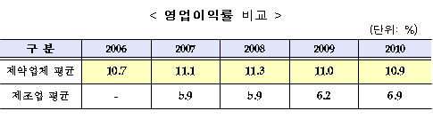 진흥원은 "2010년 국내 제약산업의 경영성과를 평가하면 다른 제조업에 비해 높은 수익성과 안정적인 재무구조를 보였다"고 분석했다.