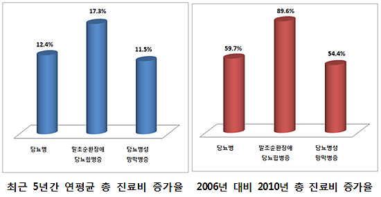 정부의 만성질환 관리정책에도 불구하고 당뇨 합병증 환자와 진료비가 급증하고 있는 것으로 나타났다.