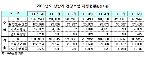 총수입은 19조2248억원으로 지난해 상반기와 비교해 11.1% 증가했으며 이 중 보험료 수입만 16조1791억원으로 14.4% 늘었다.