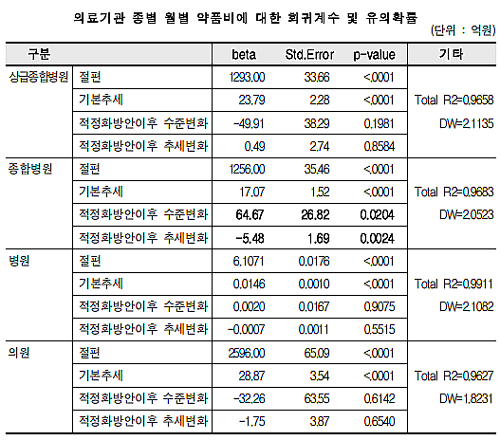 "약제비 적정화 방안, 종합병원급에만 효과 보여"