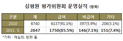 이들 평가위원회의 2010년부터 최근 5월까지의 운영실적을 살펴보면 지난 한해 6740건 중 급여 진입은 6137건으로 대부분을 차지했다. 나머지 중 비급여는 5.9%에 해당하는 397건, 기타는 206건으로 3.1% 수준이었다.