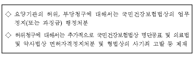 23일 복지부에 따르면 진료비 허위부당청구 행위에 대해서는 업무정지, 과징금, 부당이득금 환수 등의 행정처분이 뒤따른다. 허위청구행위에는 여기다가 자격정지, 형사고발, 명단공표까지 이중삼중이 제재가 더해진다.