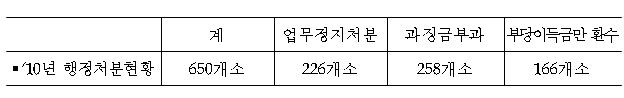또 지난해에는 650개 기관에 업무정지 처분 등 행정처분을 부과했고, 허위청구 금액이 과다하거나 조사.자료제출 거부, 업무정지 미이행 기관 52곳에 대해서는 형사고발 조치했다.