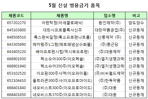 - 심평원, 5월 신규등록 성분 공개…11개 품목도 추가