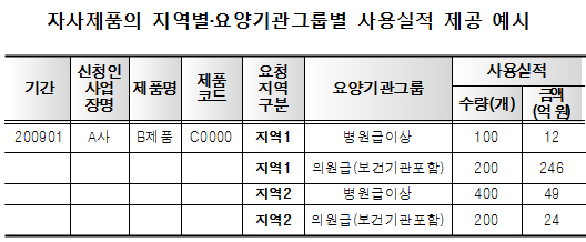 업체들의 다빈도 요청 사례를 살펴보면 자사제품의 경우 ▲요양기관 종별(또는 병상 규모별) ▲시도별·요양기관 그룹별(또는 병상 규모별) ▲요청지역별·요양기관 그룹별(또는 병상 규모별) ▲상병별 ▲상병별·요양기관 그룹별 ▲연령구간별·상병별 사용실적에 대한 자료요청이 주류를 이뤘다.