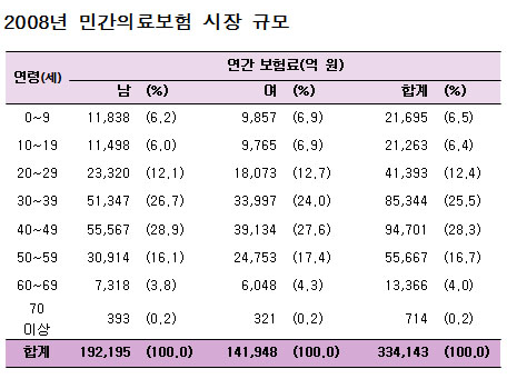 2008년 당시 건강보험료가 약 24조원 규모였음을 감안할 때 국민들은 공보험보다 민간의료보험에 더 많은 보험료를 지출하고 있는 것이다.