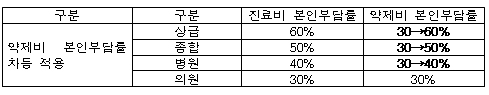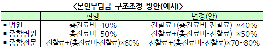 복지부는 추후 논의과정에서 진료비 본인부담 조정에 외래 약제비 본인부담을 높여 종별로 차등화하는 내용까지 추가했다.