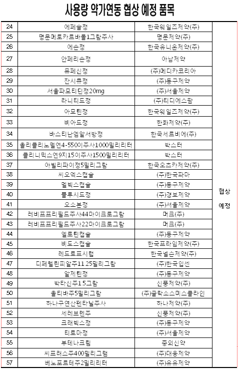 사용량 급증한 약제 57개 품목 약가인하 '임박'