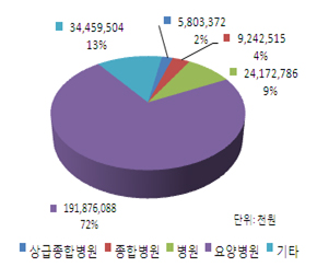 요양기관 종별로는 요양병원의 진료비 증가율이 작년대비 30%를 웃돌아 폭증세를 이어갔다.