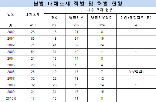 이와 함께 임의조제 적발건수는 471건으로 매년 수십건씩 적발됐다. 불법 대체조제 또한 비슷한 수준인 416건이 발생했다.