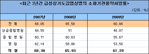 감기 처방전에는 처방률이 더 높았다. 전체 평균은 60.84%로 10건 중 6건 이상에서 소화기계약이 처방됐다.