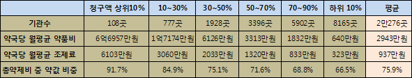 - 심평원 구간별 청구액 현황…하위10% 약국, 323만원