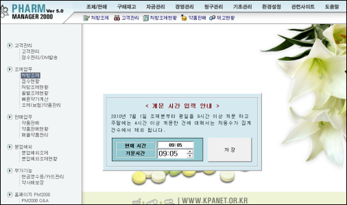 ◆약국 개문시각 어떻게 입력하나?= 현재 약사회는 PM2000을 통해 매일 청구용 PC가 최초로 실행될 경우 개문시간을 입력할 수 있도록 업데이트를 진행한 상태이다.