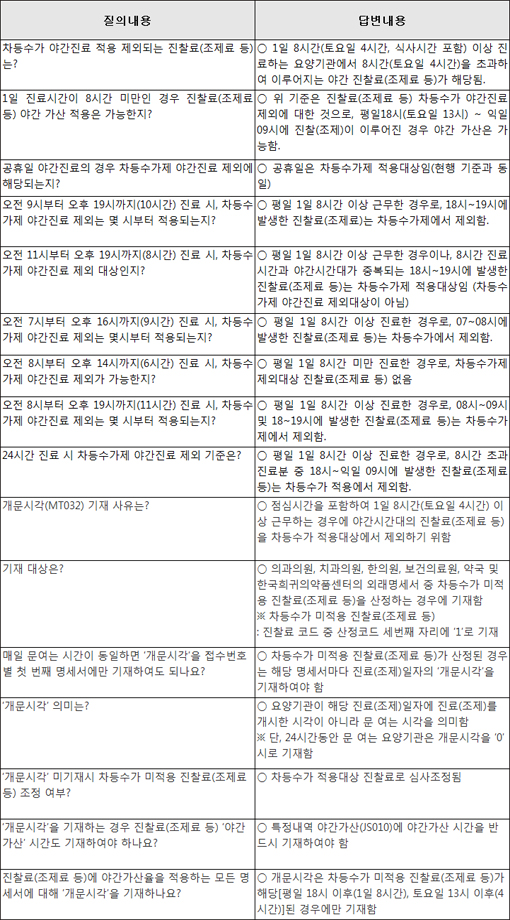 오후 6시부터 다음 날 오전 9시 사이에 진료나 조제가 이뤄졌다고 하더라도 8시간 이상 근무하지 않는 상태에서는 종전과 동일하게 차등수가가 적용된다는 것이다.