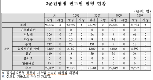 한나라당 손숙미 의원은 질병관리본부의 법정전염병 통계를 통해 법정전염병 관리실태를 점검한 결과, 이 같이 분석됐다고 14일 밝혔다.