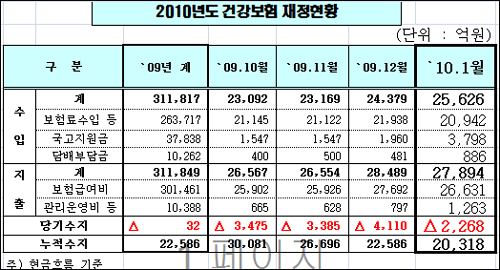 한편 건강보험공단은 지난해 임금수준 둔화 등으로 올해 보험료 수입이 정체될 것으로 보이는 반면, 급여비 지출은 신규 보장성 강화 등으로 증가할 것으로 보고 큰 폭의 당기적자가 예상된다고 전망했다.