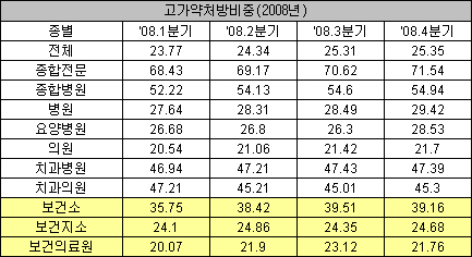 보건소, 병의원보다 고가약 더 많이 쓴다