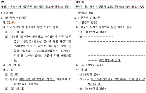 이는 현재 등재된지 3년이 지난 품목을 대상으로 진행되는 약가재평가가 현재 70%정도 진행된 상황에서 갑작스럽게 환율 기준을 3년으로 확대한다는 것이 형평성에 맞지 않기 때문이라는 것.