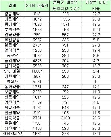 반면 주력품목군이 빠진 중외제약, 녹십자, 종근당 등은 상대적으로 약가태풍에서 벗어날 수 있을 것으로 보인다.