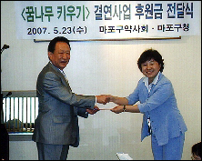 '꿈나무키우기' 캠페인은 관내 저소득층 자녀의 급식비와 교육경비 등을 지원하는 마포구청 주관의 사업이다.