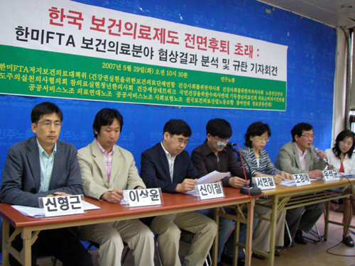 대책위는 "FTA 협상이 보건의료제도에 미치는 악역향은 민간의료보험 규제폐지로 인한 건강보험 축소, 건강보험 예외확대, 1국 2의료체계 고착화, 의료비 폭등, 건강보험 재정악화 등 그 피해가 끝이 없을 것“이라고 주장했다.