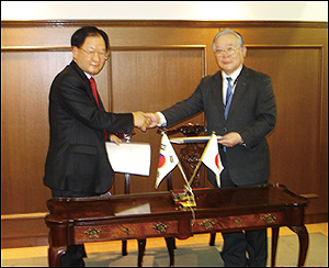 이날 계약은 우리팜 김연판 사장과 코와의 의약품 총괄 책임자 대표 취체역인 야마모토간에 이루어졌다.