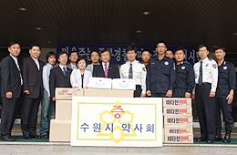 시약사회는 수원시약업인협의회 회원사의 도움을 받아 구급함 10개, 구충제 등 의약품 13개 품목을 경찰서에 기증했다.