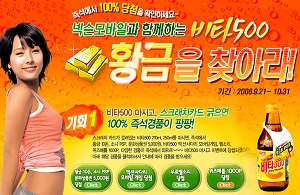 이외에 SK텔레콤과 공동으로 비타500 210ml, 250ml 제품에 걸린 행운번호를 '비타500 모바일 홈페이지(***500+Nate)'에 입력하면 순금 10돈, PSP, 효리댄스 동영상 등의 경품을 제공하는 이벤트를 내달까지 진행할 계획이다.