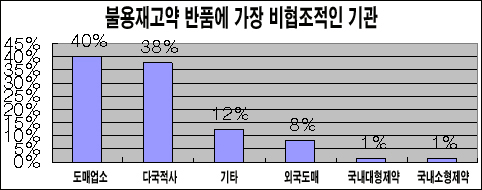 또 약사들은 불용재고약 반품에 가장 비협조적인 곳으로 도매상과 다국적 제약사를 꼽았다.