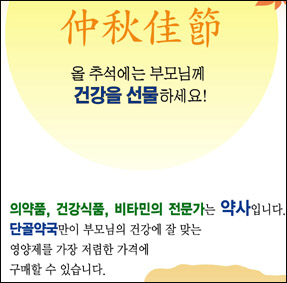 이진희 회장은 "추석을 맞아 각 회원약국들의 매출 향상에 기여하고 약국 이미지를 개선하는 차원에서 마련한 포스터"라며 "단골약국 활성화 차원에서도 의미를 가질 수 있는 이벤트"라고 설명했다.
