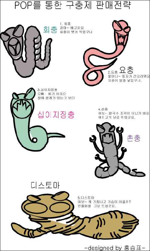 POP를 보면 회충에 대한 설명은 “엄마~ 배고파요. 회충이 빼어먹었구나” 요충은 “할머니 똥꼬가 가려워요. 요충이 알을 낳았구나.” 같은 식의 대화체로 구성돼 있어 고객들의 이해도와 집중도를 높였다는 평가다.