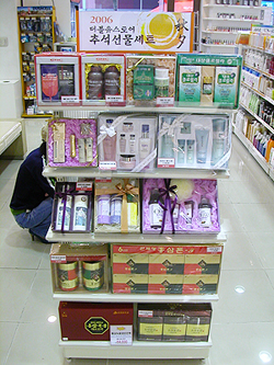 추석 선물세트에는 웰빙 붐을 타고 구매가 늘어나고 있는 인삼·홍삼 세트와 클로렐라, 비타민 세트 등을 비롯해 안마기기, 올리브유, 꿀, 건강차 등이다.