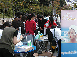 회사는 이날 '에돔 머드마스크' 무료증정 행사와 머드비누, 여드름용 스킨 풀세트를 추첨을 통해 나눠주며 학생들의 눈길을 사로잡았다.