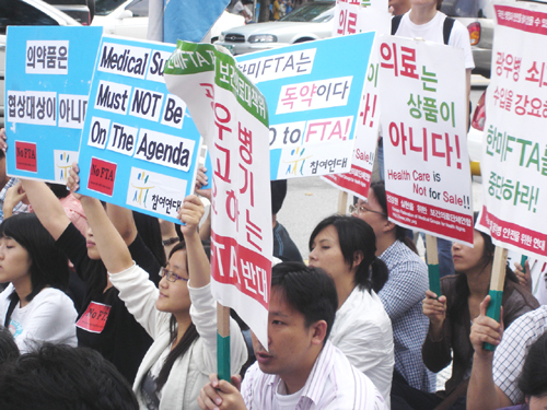한미FTA저지보건의료대책위와 보건의료학생대책모임, 에이즈예방공동행동 소속 회원 300여명은 이날 종로 탑골공원 앞에서 집회를 갖고, "FTA는 국민의 건강과 환자들의 생명을 다국적 제약기업에게 팔아넘기는 것과 같다"면서, 협상중단을 촉구했다.