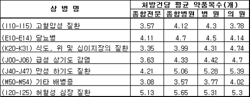 처방건당 약품목수 '심장질환' 5.3개 최고